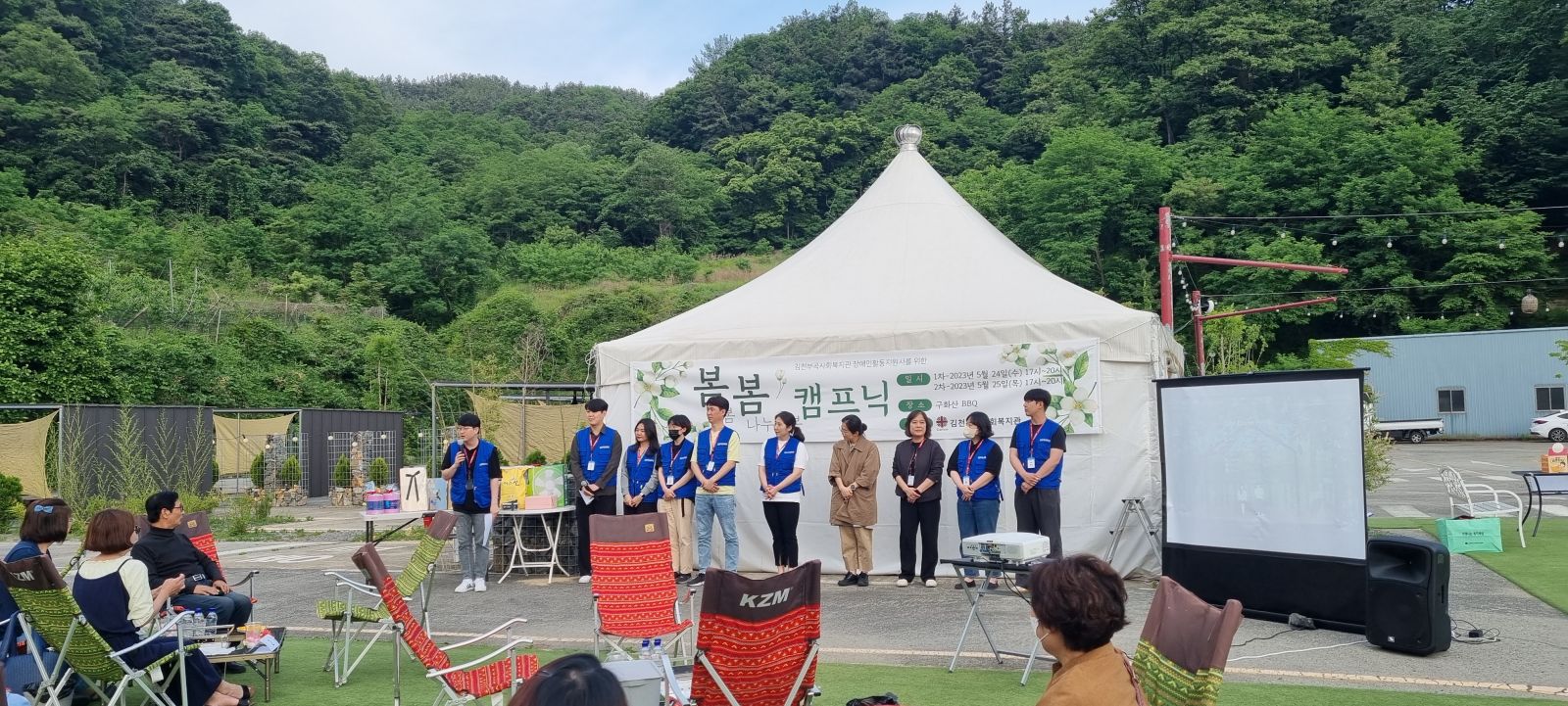 김천부곡사회복지관에 소속된 장애인활동지원사들에게 감사하는 마음을 전하고 활동지원사간의 소통과 화합을 위한 ‘봄봄(돌봄,나누어봄) 캠프닉’을 김천 구화산BBQ에서 2023년 5월 24일, 5월 25일 양일간 진행하였습니다.